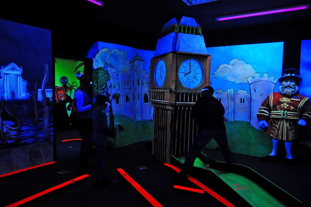 Spielen Sie neunzehn 3D-Level auf unserer Schwarzlichtanlage. Unser neuer atemberaubender 3D-Golfkurs führt Sie durch 18 Städte´auf über ca. 1500 Quadratmeter: Das Erlebnis für Groß und Klein bei jedem Wetter und zu jeder Jahreszeit. Sie suchen eine besondere Location für eine Geburtstags-, Weihnachtsfeier oder ein Firmenjubiläum? | DANN SIND SIE IN GOLFCITY RICHTIG.